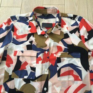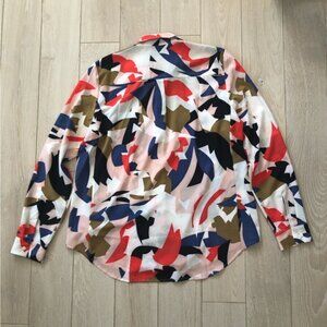 NWT RW&CO. Abstract Print Chiffon Button Up Shirt Size L