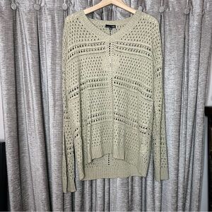 NWT RXB Open Knit Crochet Tan Crewneck Sweater Size Large