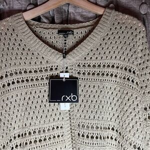 NWT RXB Open Knit Crochet Tan Crewneck Sweater Size Large. Material as shown in photos. Crochet style sweater.