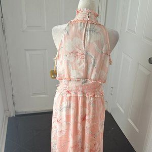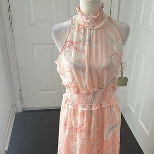 NWT RYEGRASS Women's Dress Peach Floral Sleeveless High Neck Smocked Waist SZ M