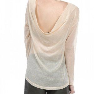 NWT Luxe Boutique Designer RYU Wavy Stripe Scoop Back Sweater with sheer sleeves and back. Luxury knit fabric. Gorgeous, high quality fabric.