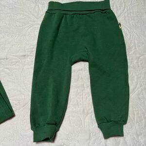 New with tags Rabbit + Bear two piece jogger set outfit in organic cotton. Green joggers with matching sweatshirt with button front and JOLLY appliqué design. So cute for Christmas! Size 18 months.