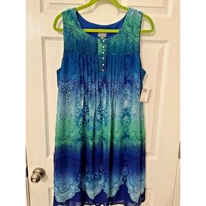 NWT Rabbit Rabbit Dress Sz 16 Blue Green Sleeveless Sundress Summer Vacation