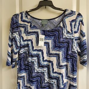 NWT Rabbit Rabbit Rabbit Blue and White Zigzag Midi Dress