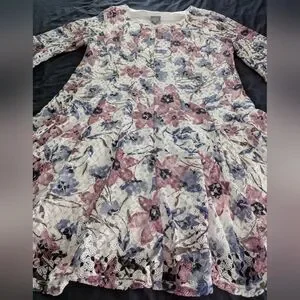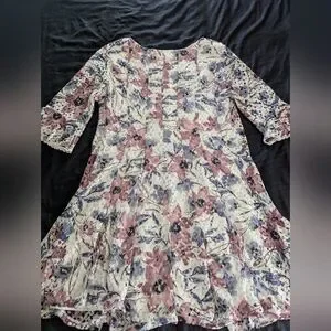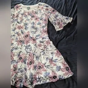 NWT Rabbit, Rabbit, Rabbit Dress, 24W (25' pit to pit, 23.5' across waist, 41' length). Floral, lace overlay dress, lined, quarter bell sleeves, trimmed in lace, fit & flare.