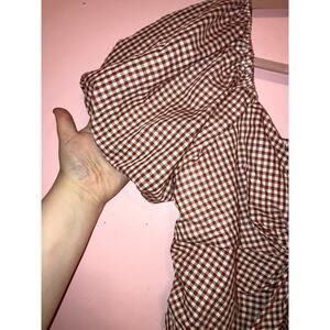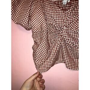 NWT Rabbit Rose poofy sleeve red and white gingham print cropped top size large