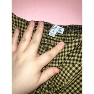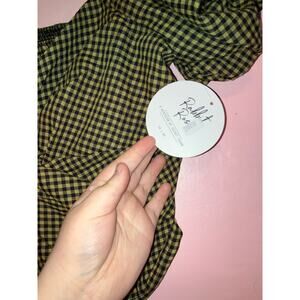 NWT Rabbit Rose tan and black gingham print dolman twist cropped top medium