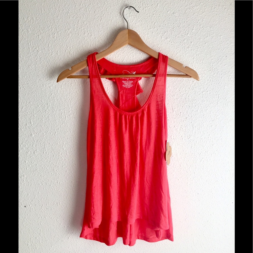 Cute Racerback tank purchased from Macy's. Pretty red orange color. Has ruffle detailing along racerback. Perfect for summer ✨
