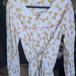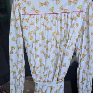 When pasta on your plate just isn’t enough. This dress from Rachel Antonoff has puff sleeves, a button front, a tie belt, and (yes!) rainbow farfalle all over it.