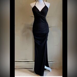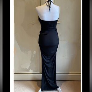 NWT Rachel Pally Black Sleeveless Halter Ruched Bodycon Side Slit Maxi Dress