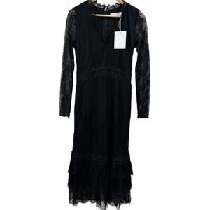 NWT Rachel Parcell Lace Tiered Midi Dress In Black