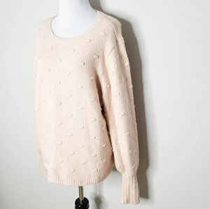 New with Tags Rachel Parcell Bobble Stitch long sleeve sweater in Pink Smoke. Bobble stitching creates a raised polka dot look.