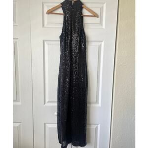 NWT Rachel Roy Black Fitted Sequined Back Slit Midi Dress • Size XS