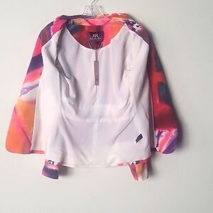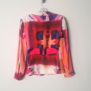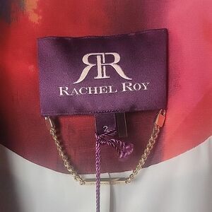 NWT Rachel Roy Sz 2 4 Silk Blazer Jacket Colorful Pink White Art Feminine Office