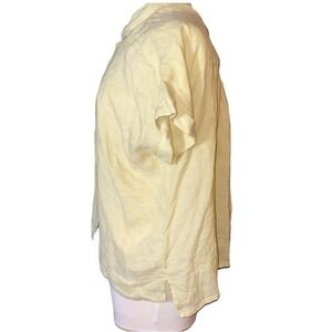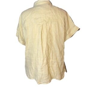 NWT Rachel Roy Woman's Large Linen Yellow Button Up Shirt Short Sleeve Top