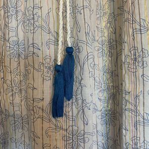 Brand new with tags! This lovely boho style top has mixed print, light and airy fabrics with metallic threads running through it. This top has a smocked bodice and back yoke with an embroidered detail split neck with tassel tie accent.Made in India