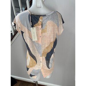 NWT Rachel Zoe 100% Linen Artsy Top Womens Multicolor Medium