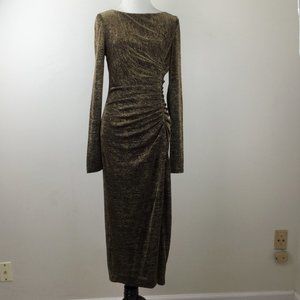 NWT Rachel Zoe Black/Gold Metallic Midi Dress 6