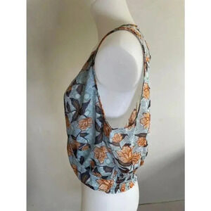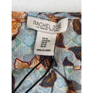 NWT Rachel Zoe Blue Floral Wrap Top Size M Lotus Gold Thread 0159