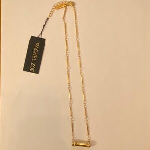 NWT Rachel Zoe Gold Chain Necklace W/Fixed Barrel Pendant Rhinestone Sides