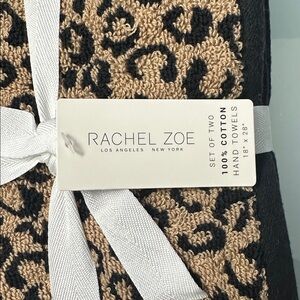 These towels are new, in the original packaging, with no damage! This is a 2 piece set of hand towels by Rachel Zoe! They come in a super cute cheetah print in the classic tan and black coloring. They are made of 100% cotton. Measurements are as pictured. Comes from a non-smoking household.