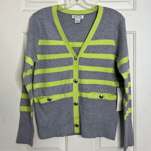 NWT Rachel Zoe Stripe Silver Button Cardigan S Grey Green