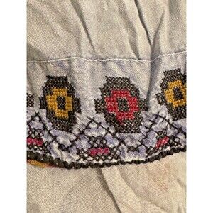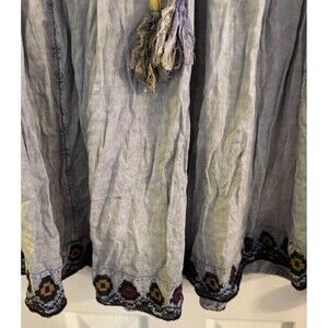 NWT Rachel Zoe Top Sz 1X Blue Embroidered Tassel Tie Mineral Wash Boho Festival