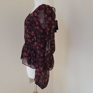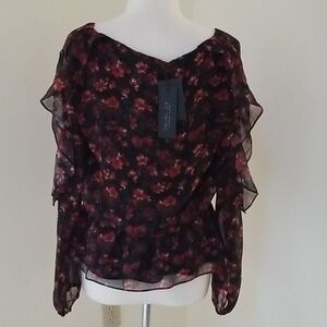 Rachel Zoe large floral printed multi long sleeve silk blouse with ruffles on sleeves .Has elastic on lower waist . Lined . Beautiful