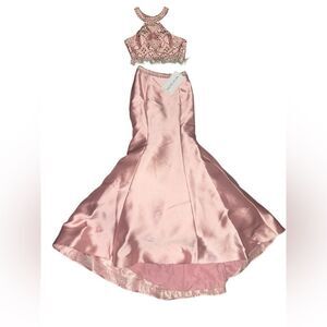 NWT Rachel Allan 2 piece beaded blush halter flare skirt formal gown Style #7557