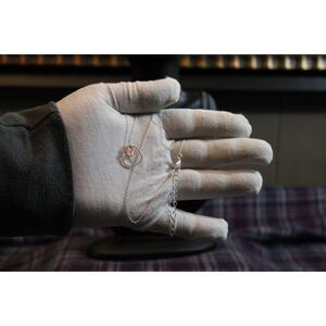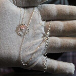 This is brand new with tags. The tags read Radiant Lead-Free Nickle Free Czech and Swarovski Crystal. Features one very pretty and sparkly faceted glass pink bead dangle and a silver-tone heart charm. The chain measures 16 inches with a two-inch extender.