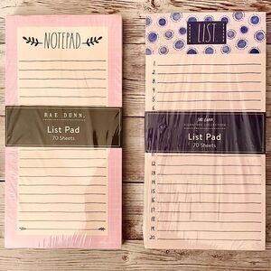Rae Dunn 2 Pc NOTEPAD / LIST Notepad Set Ivory PInk Blue Printed 140 Sheets