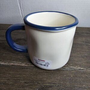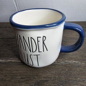 NWT Rae Dunn Artisan Wanderlust Coffee Mug Blue Trim Summer Camping Boho