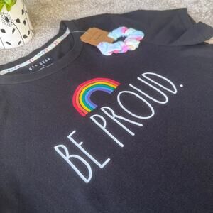 NWT Rae Dunn Black "Be Proud" Rainbow Pride Short Sleeve Top Size: Medium