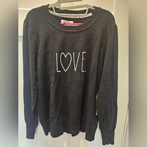 NWT! Rae Dunn Black Puff Sleeve “LOVE” Sweater XL