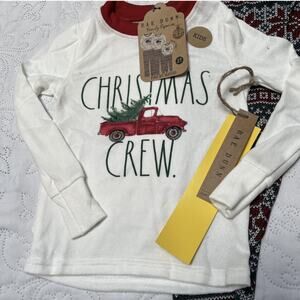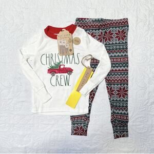 New with tags Rae Dunn two piece holiday pajamas. Fair isle pant bottoms and long sleeve Christmas Crew top. Size 2T.