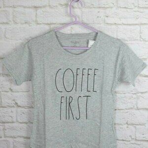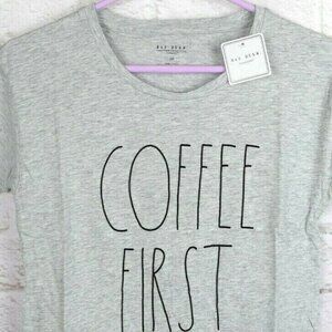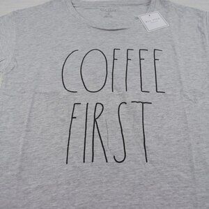 NWT Rae Dunn Coffee First Gray Tee T-Shirt XS