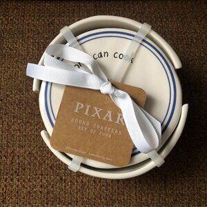 NWT Rae Dunn Disney Pixar Ratatouille Set of 4 Ceramic Coasters w/ Holder
