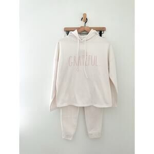 NWT Rae Dunn Grateful Lounge Set Small Ivory White Hoodie Sweatpants Casual