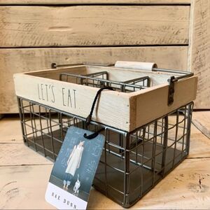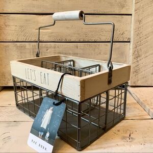 NWT Rae Dunn Let’s eat Caddy Utensils Organizer wire Wood Handle Big Lettering