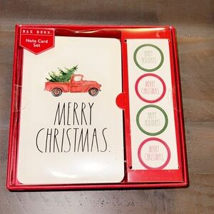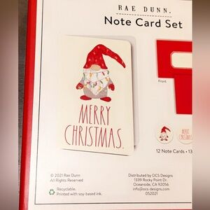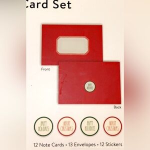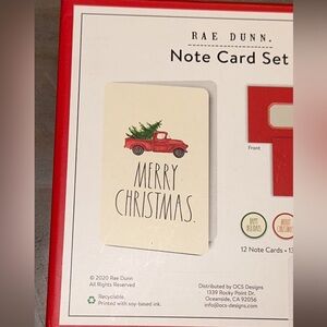 Rae Dunn note card set with festive design! This listing is for one box which consists of 12 note/Christmas cards/13 envelopes/12 stickers.