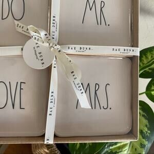NWT Rae Dunn Mr. Mrs. I Do Set Of 4 Ceramic Coasters