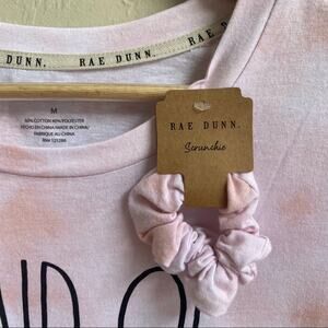 Pink and white cloud tie dye, short sleeve t-shirt and matching scrunchie