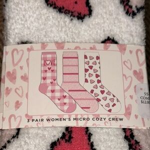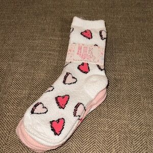 NWT Rae Dunn Pink/White Fuzzy Heart Micro Cozy Crew Socks 3 pair Valentine’s Day
