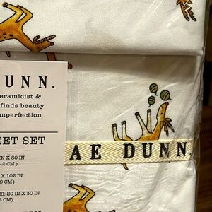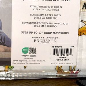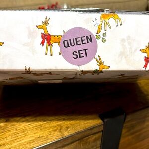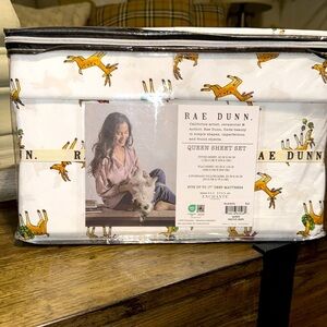 NWT Rae Dunn Queen Bedding Sheet Set Christmas Seasonal Holiday Festive Reindeer