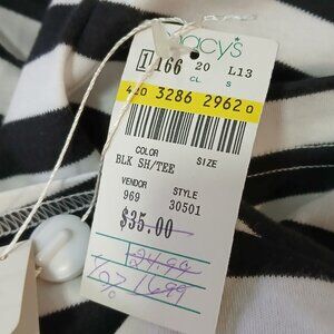 NWT Rafaella Black and White Striped Elbow Sleeve T Shirt Size Medium