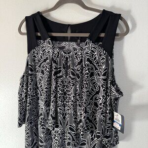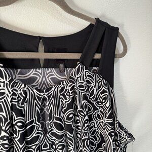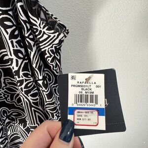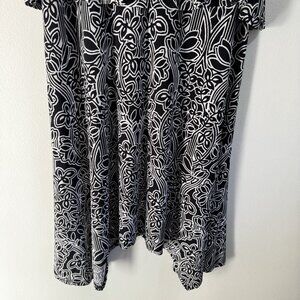 NWT Rafaella Dress XLP Petite Black White Floral Strappy Stretch Jersey Swing