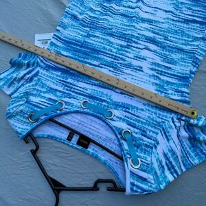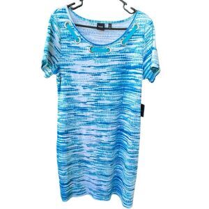 NWT Rafaella size L Cabana Party Scuba Blue dress. Outdoors beach comfort. 100% cotton knit. Round neckline with ribbon in front.