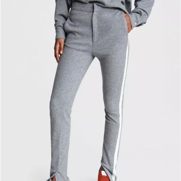 Leisure-wear at its finest: Joan is a slim fit pant with a zip fly, high rise waist, and side stripe detailing. Cut from a cotton blend with a slit at the ankle for more wearability.