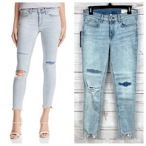 NWT Rag & Bone Ankle Skinny Chewed Raw Hem Jeans in Lynn with Patch Holes