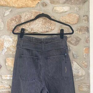 NWT Rag & Bone Darted High Rise Paper Bag Pants in Washed Black Womens 25